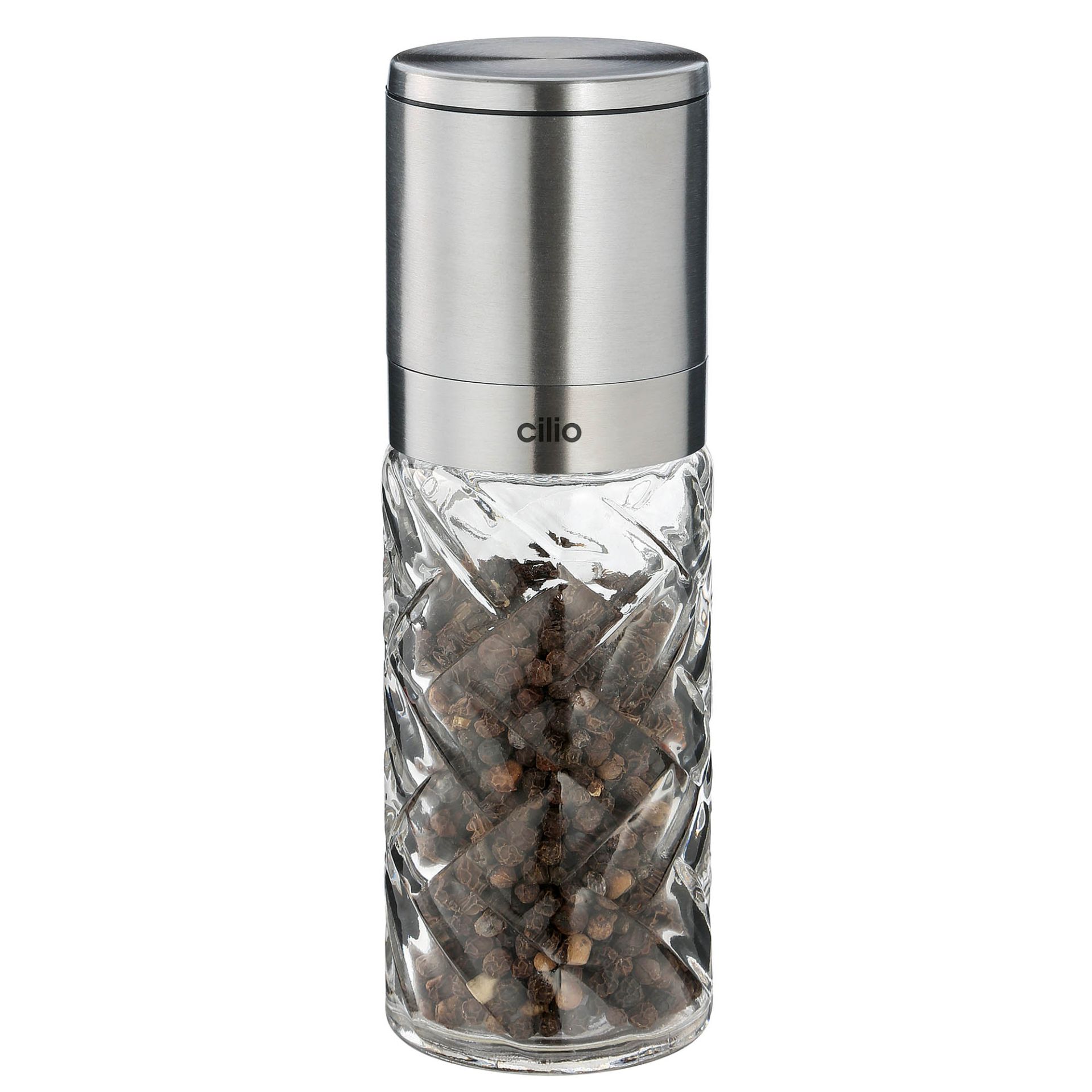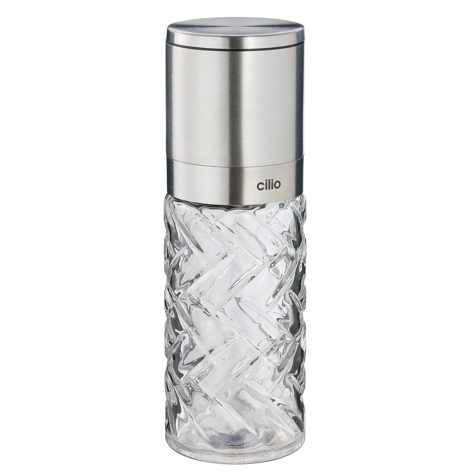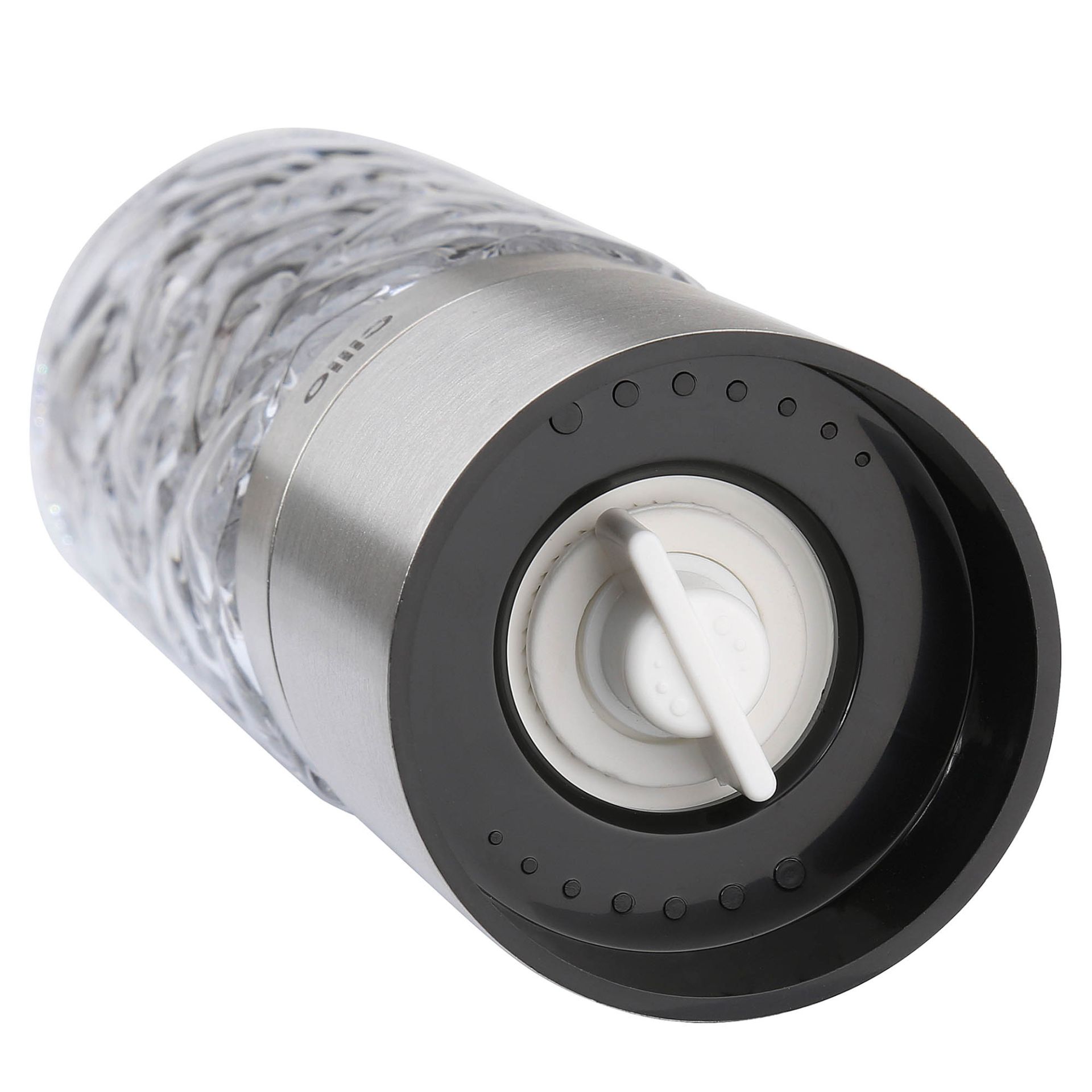 O elegante moinho de sal / pimenta CRISTALLO feito de aço inoxidável com recipiente de vidro tem um moedor de cerâmica de alta qualidade, resistente à abrasão e livre de corrosão que é adequado para uso com sal e pimenta. O grau de moagem pode ser infinitamente ajustado de grosseiro para fino. O moedor montado na parte superior evita marcas de moagem na superfície de trabalho, enquanto a tampa do sabor protege o moedor e preserva o sabor.