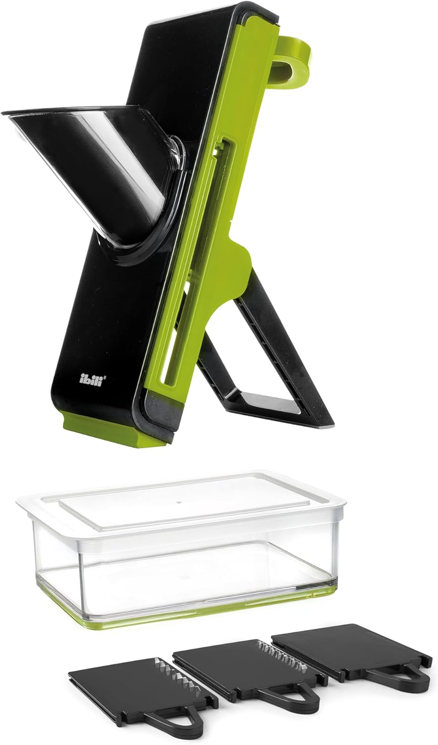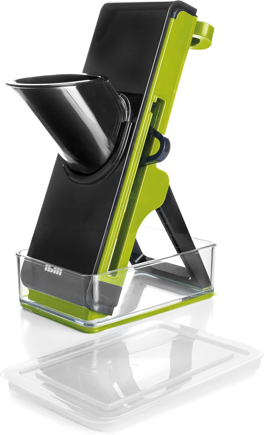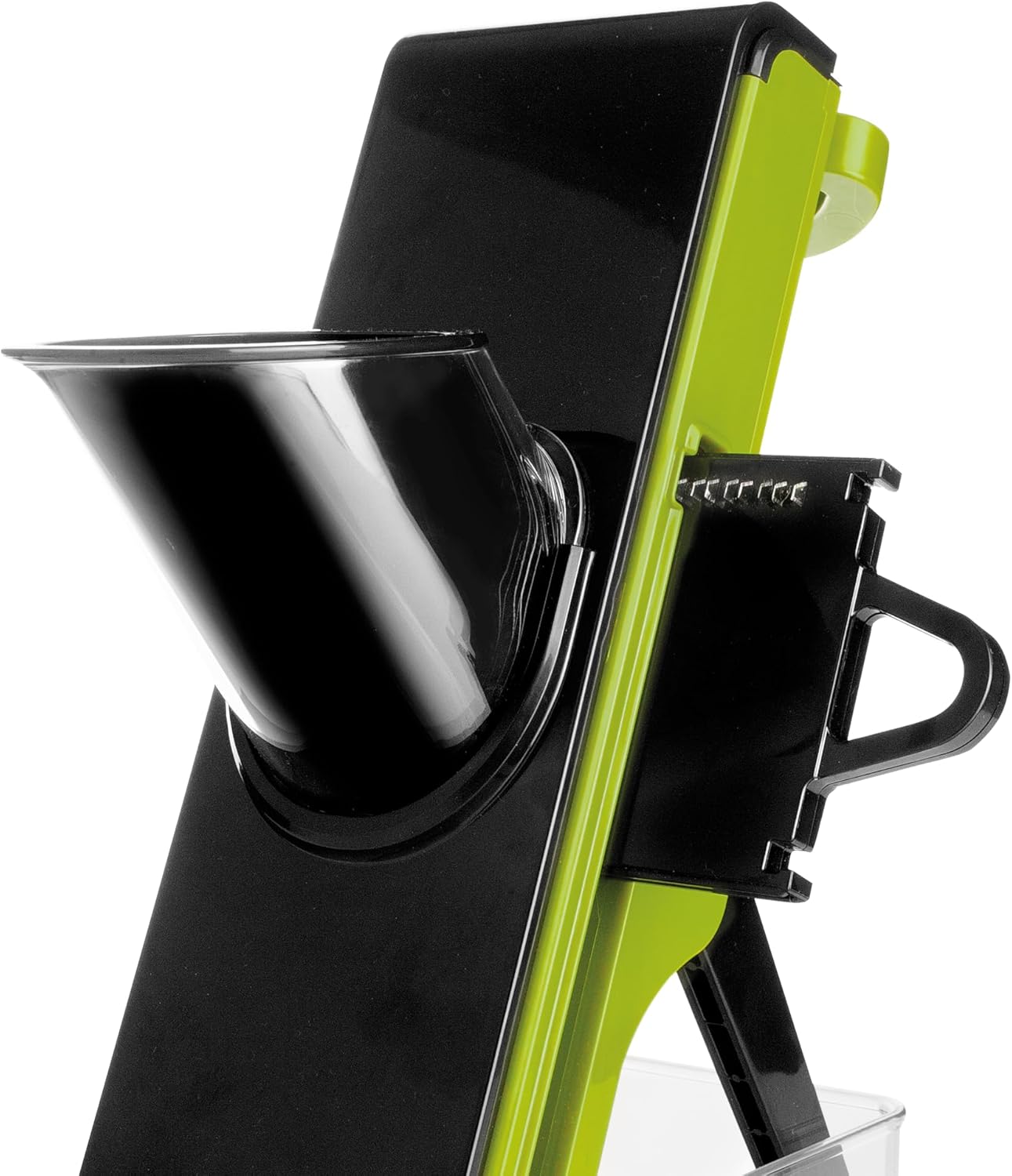 Mandolina Easy Cook com 3 lâminas intercambiáveis A mandolina vertical Easy Cook é um excelente aliado no corte de legumes, reduzindo o esforço graças ao seu formato vertical e aumentando a produtividade com os seus três modos de corte. Vem equipado com três lâminas intercambiáveis para julienne, corte grosso e corte fino. Utiliza um tubo de alimentação e um empurrador específico para processar os alimentos com facilidade e segurança. O seu suporte dobrável tipo bipé garante estabilidade durante o corte. Incorpora um recipiente para alimentos, que serve tanto para recolher os cortes como para a conservação. As suas opções de dobragem e desmontagem permitem uma limpeza e armazenamento ideais. Esta mandolina pertence à coleção Easy Cook, que oferece utensílios práticos para o manuseamento de alimentos numa linha de design moderno e criativo.