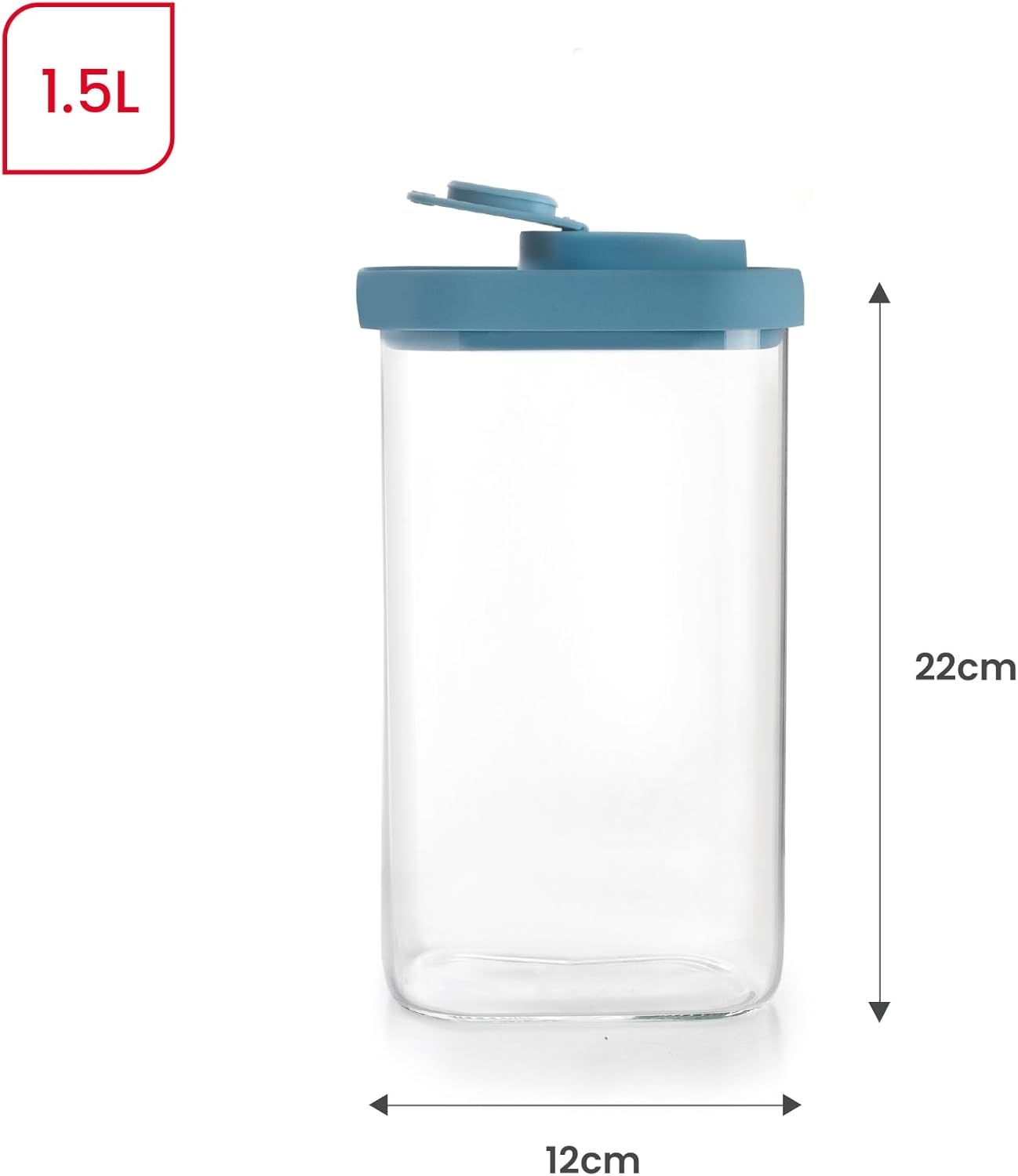 Fabricado em vidro borossilicato durável e com tampa hermética em silicone.