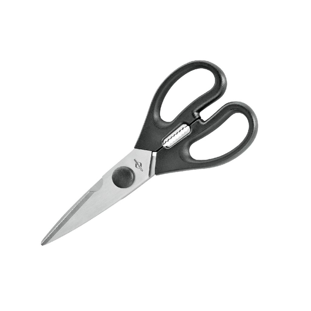 A tesoura é feita de aço inoxidável revestido com titânio. As lâminas serrilhadas e afiadas cortam ervas com facilidade, assim como caixas de cartão e outras embalagens. A tesoura pode ser desmontada para facilitar a lavagem. As bordas serrilhadas do cabo são ótimas para abrir frascos e também podem ser utilizadas para partir ossos ao preparar frango.