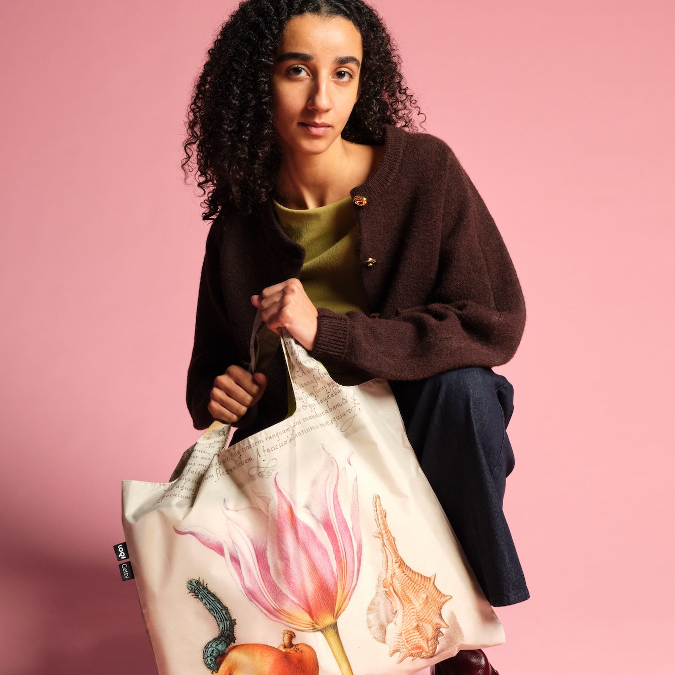 Uma libélula como espécime científico rígido. O inseto imaginário pousando delicadamente no cravo. Uma pera madura com a sua casca aveludada. Uma tulipa cor-de-rosa em plena floração. Explore a sensação de equilíbrio criada por Joris Hoefnagel com este saco de tecido reciclado. © 2024 J. Paul Getty Trust